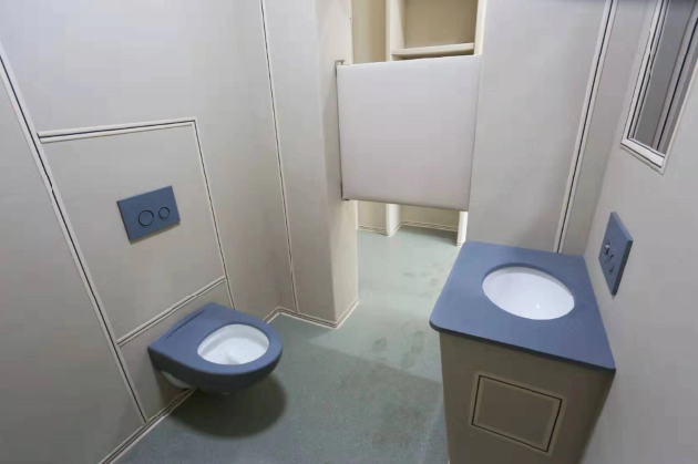 談話室內(nèi)部一般都會(huì)配置獨(dú)立的衛(wèi)生間,方便談話過程中內(nèi)急的使用,但是在衛(wèi)生間內(nèi)部配置的馬桶,必須做到防撞,防火阻燃,防水防潮,環(huán)保等這些功能,所以對于馬桶的材質(zhì)也是非常嚴(yán)格。