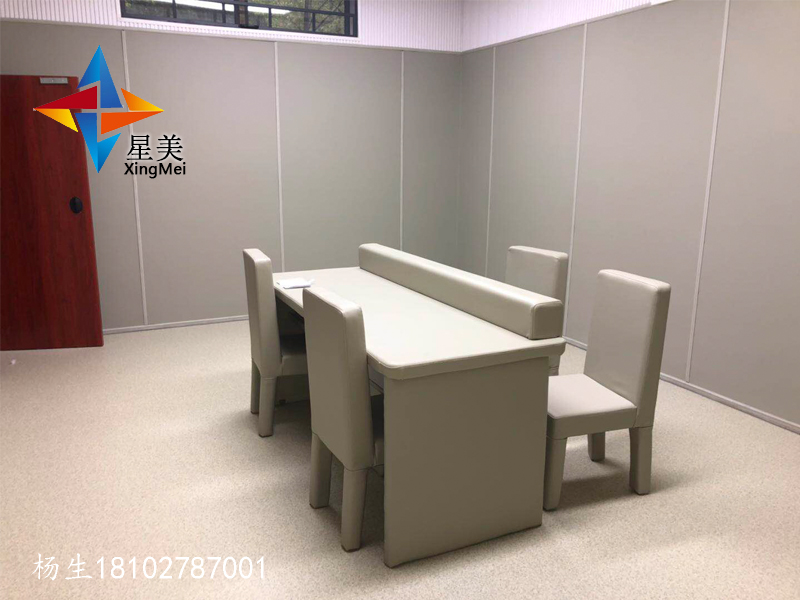 1、墻面安裝新型防撞軟包以防在審訊的過程中嫌疑人通過撞墻或者利用室內(nèi)硬物致殘的行為影響辦案進度,再者也是為了防止出現(xiàn)人員沖突的特殊情況,為執(zhí)法人員及嫌疑人的人身安全提供了一個基礎(chǔ)的保障。