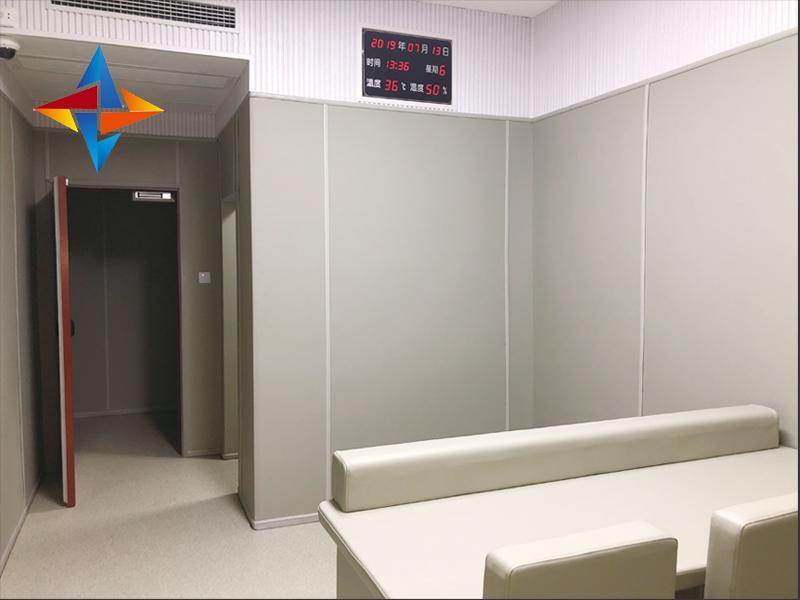 星美的防撞阻燃吸音材料專業(yè)為派出所審訊室、公安局辦案區(qū)、紀(jì)檢委談話室、詢問室、檢察院訊問室、看守所關(guān)押室、反貪局、海關(guān)緝私局、交警大隊訊問室、醒酒室、特審室、信息采集室、辨認(rèn)室、紀(jì)委審查室、禁毒支隊、戒毒所、拘留所等執(zhí)法辦案場所相關(guān)部門量身打造集防撞、阻燃、吸音隔音為一體的防自殘、防磕碰的保護(hù)性墻面,能很好保護(hù)嫌疑人出現(xiàn)自殘、撞墻等行為。