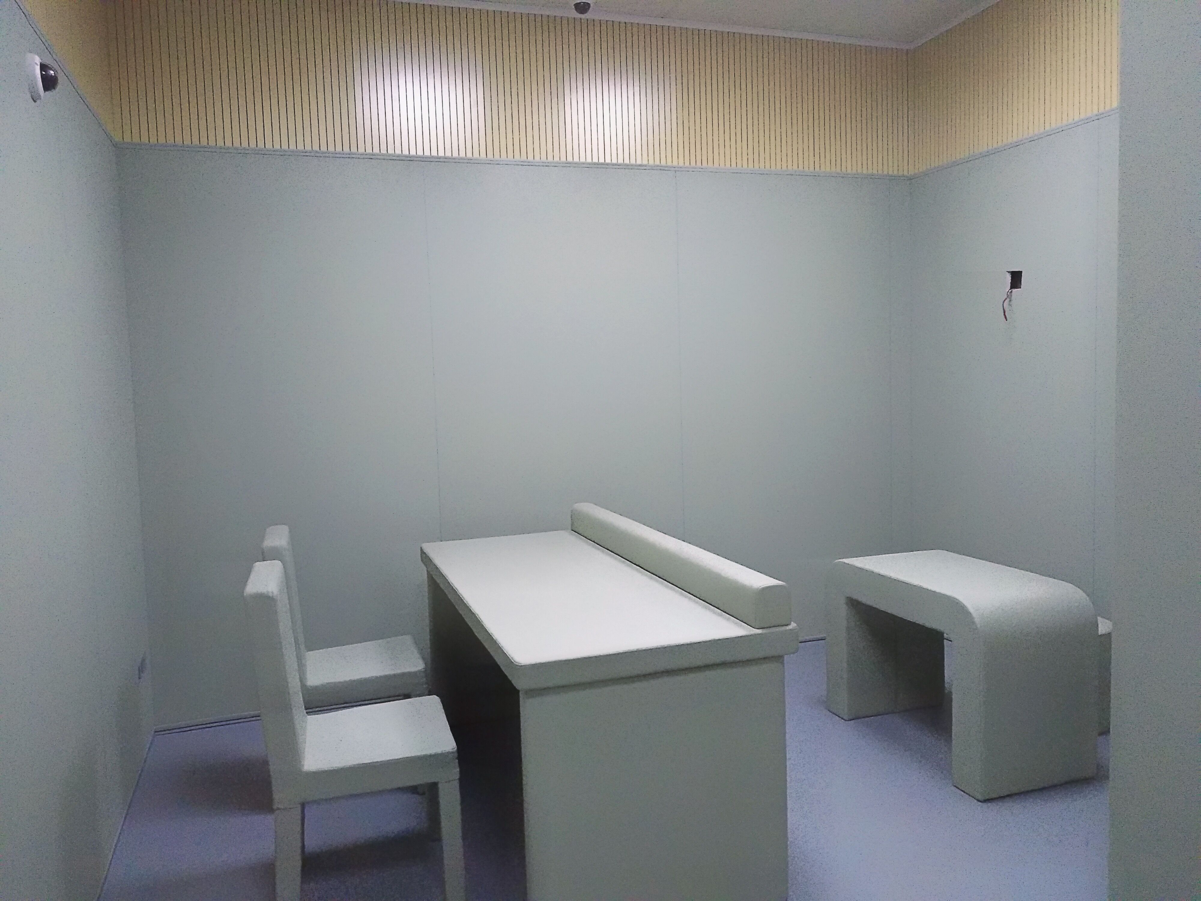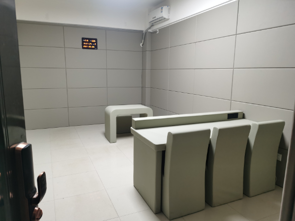 (1)為防止因被審訊(訊問)人因發(fā)生碰撞而造成意外,審訊臺審訊椅都要進行軟包或圓角處理,不能有尖銳突出角。