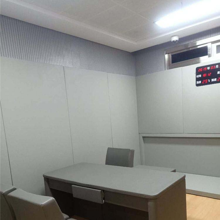 羈押室墻面防撞軟包的基材是高密度分子納米棉,密閉孔材料,不但防撞性能好,而且還具有吸音,環(huán)保,阻燃,防水的功能,防撞軟包面飾為皮革,表面皮革耐磨,不易劃破,可防摳拉撕扯。背面貼有鋁箔,阻燃性能,為安全性能再加分。常用規(guī)格為1200*2400mm,17mm/25mm厚,配合卡扣收邊條來安裝,安裝步驟簡單方便,裝飾性美觀,整潔大方。
