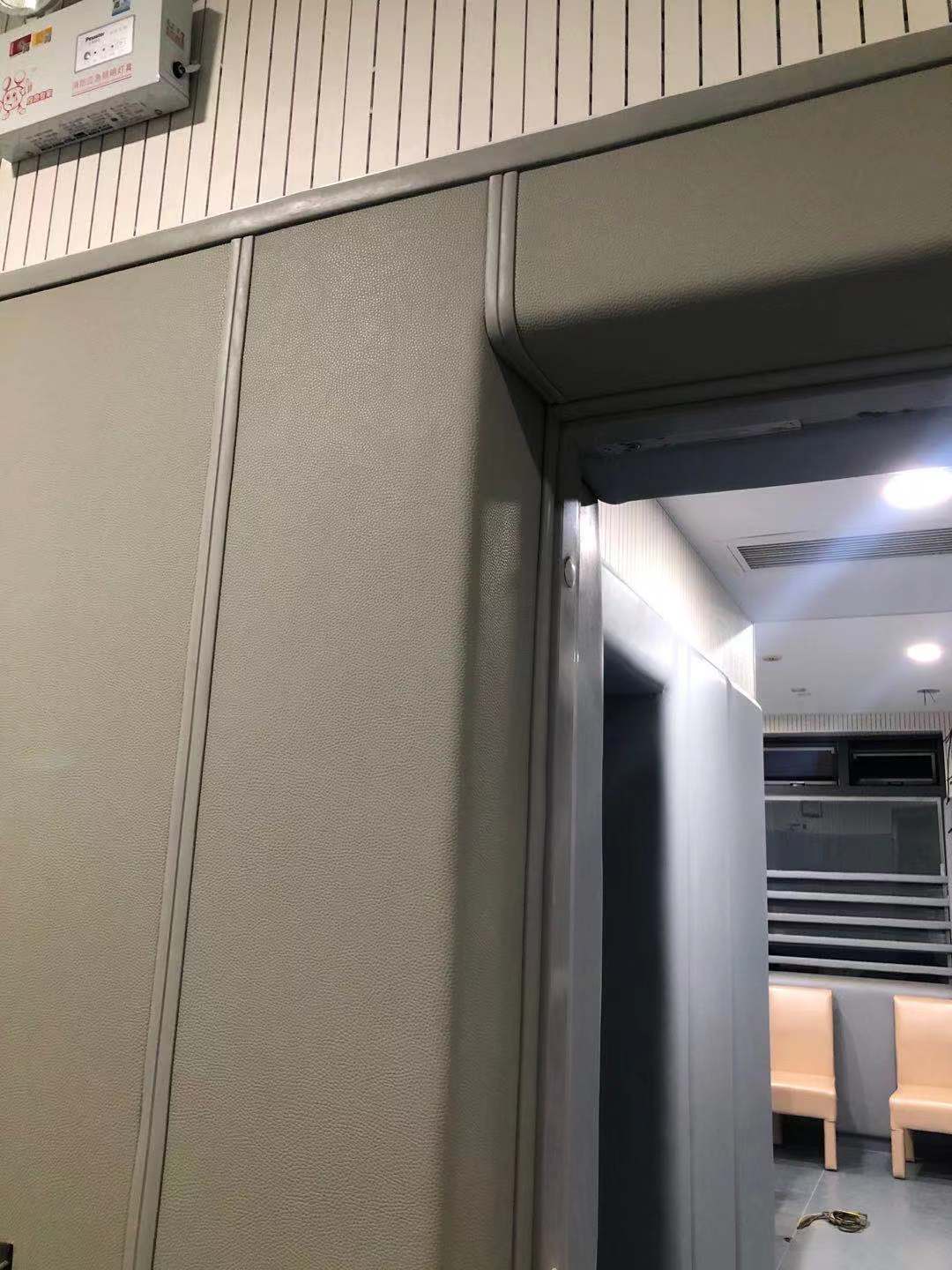 留置室軟包:采用基材具有防火阻燃功能的高彈性聚乙稀電子發(fā)泡棉,飾面采用原材料防火阻燃的皮革,兩者進(jìn)行高溫火附的無(wú)膠復(fù)合方法制造而成。經(jīng)過(guò)層層賽選,其飾面皮革顏色符合制造的色號(hào)只有淺灰色和米黃色,因?yàn)槠渌伾奈鼰嵝阅芨薨櫺阅芏环现圃炝糁檬臆洶?,所以選取了米黃色或者淺灰色為飾面顏色。制造規(guī)格為寬度1250mm,高度2450mm。總體厚度具有20mm和30mm。采用軟