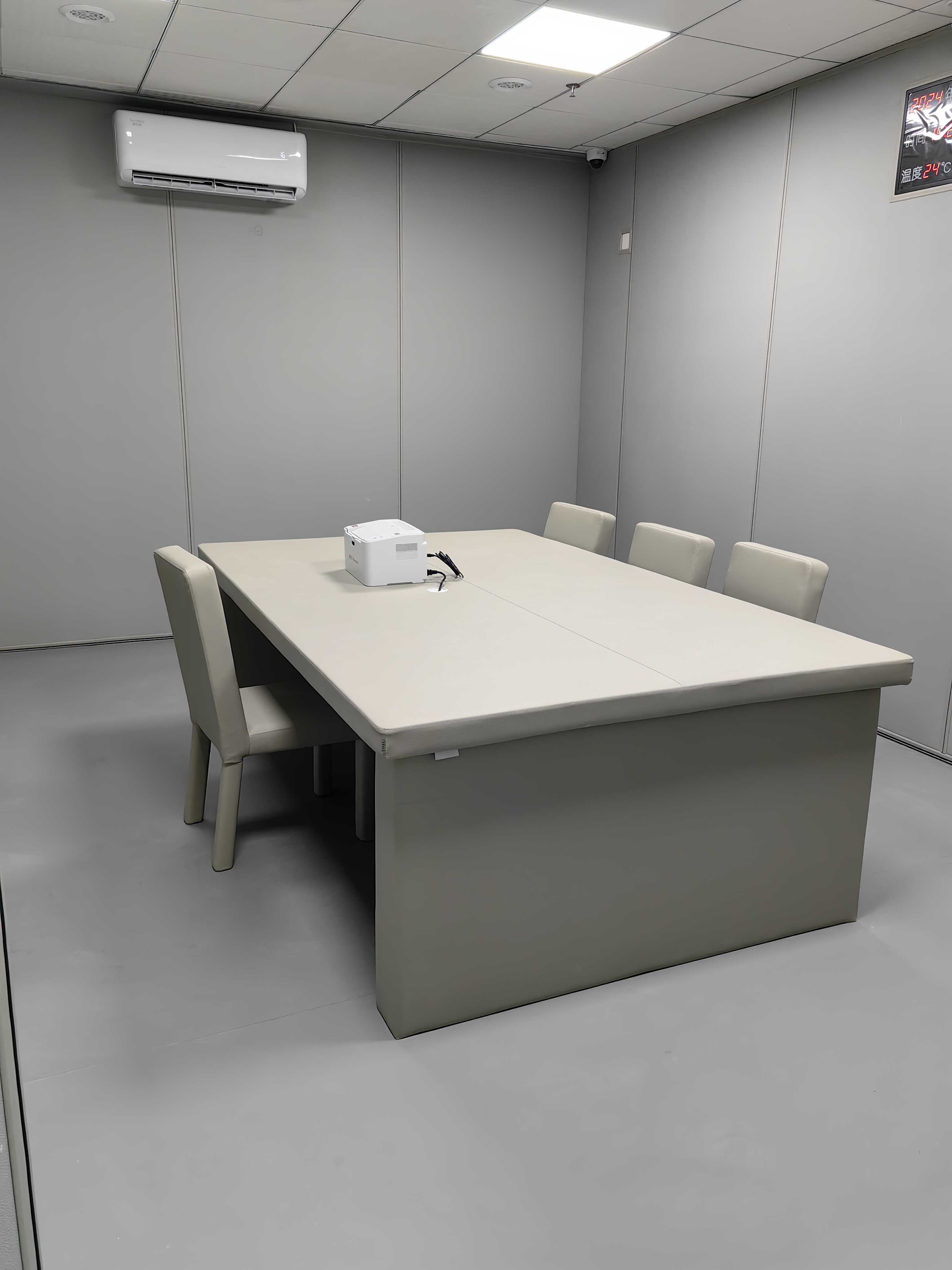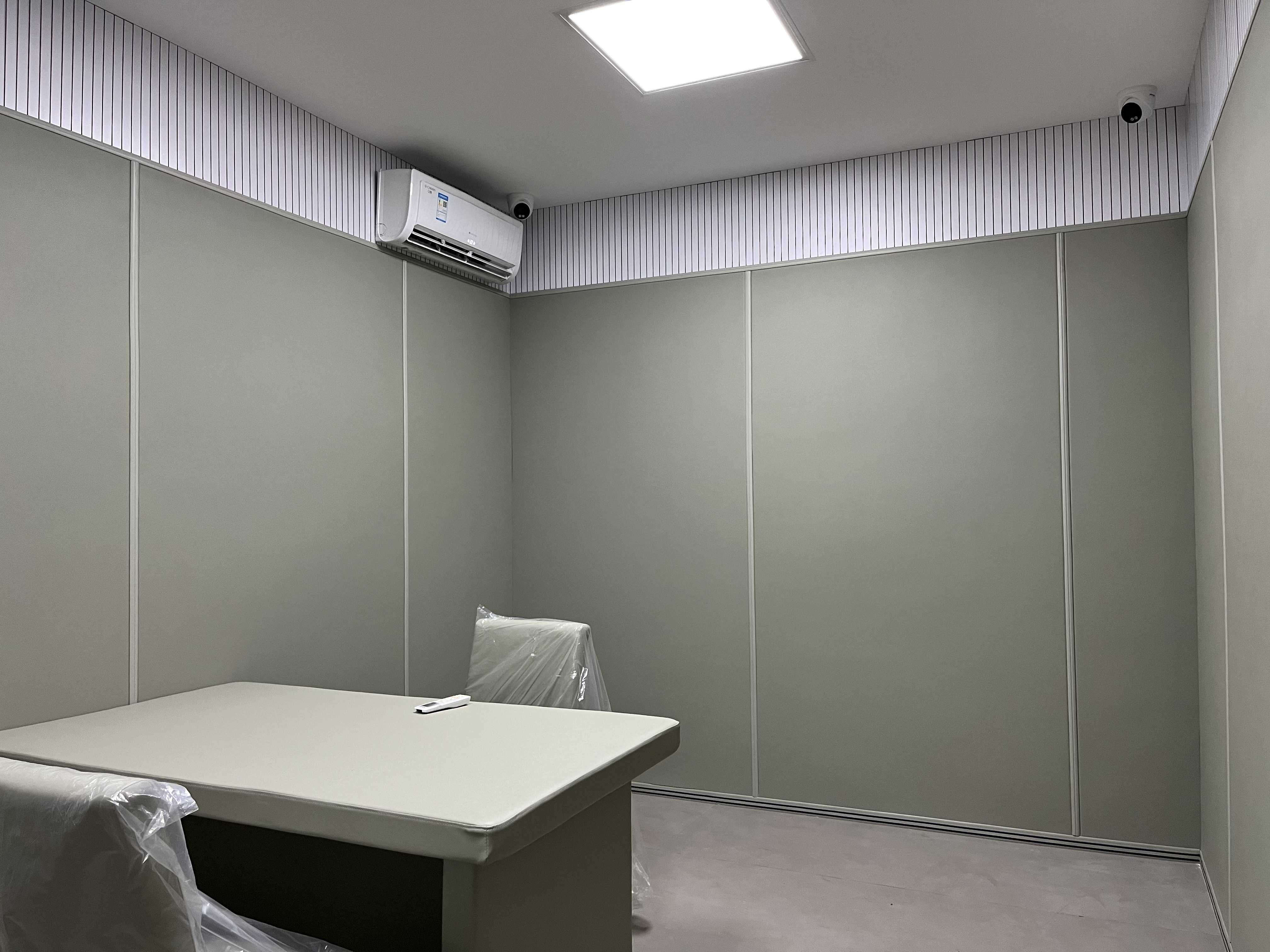 審訊室建設(shè)應(yīng)有吸聲功能,材料均具備吸聲及隔音處理,以凈化音質(zhì),達(dá)到錄音清晰的目的。 紀(jì)委審訊室以外的過道或醫(yī)療室也要在墻面做防撞軟包處理。 紀(jì)委審訊室地面也要求做塑膠地板。